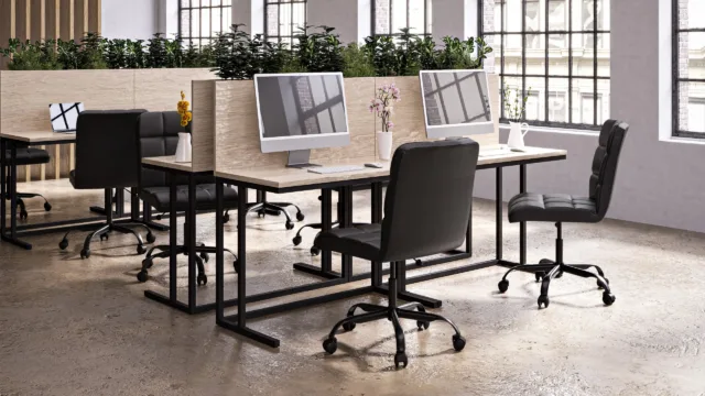 Modern Office Chairsウェイナー オフィスチェア - ブラックヴィーガンレザーとクロム製ベース、キャスター付き ¥42,569 ウェイナーオフィスチェア - グレーのヴィーガンレザーとクロムベース、車輪付き +69