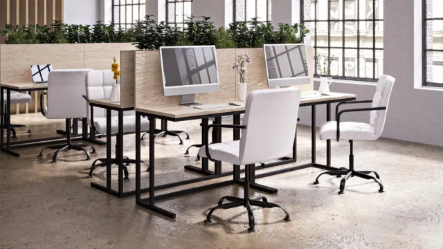 Modern Office Chairsウェイナーオフィスチェアー - ホワイトヴィーガンレザーとマットブラックベース(ホイールなし) ¥42,569 ウェイナーオフィスチェア - グレーのベーガンレザーとクロムベース、ホイールなし +69