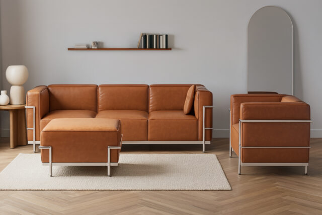Corbusier Grand Modele Ottoman、Tan Premium Leather