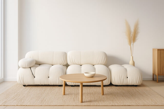 Mario Bellini Outdoor Ottoman, Cream Chunky Performance Weave