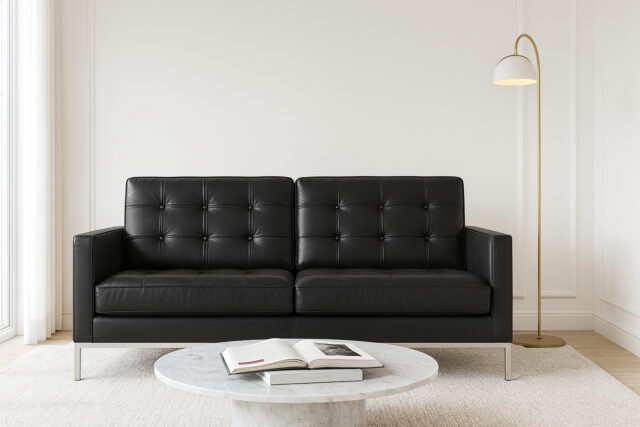Elaineイレイン、ブラック(ヴィーガンレザー)、3シーターソファ ¥564,019 エレイン、ライトグレー(リネン)、スリーシーターソファ エレイン、ダークグレー(リネン)、3人掛けソファ エレイン、ブラウン(ビーガンレザー)、3人掛けソファ