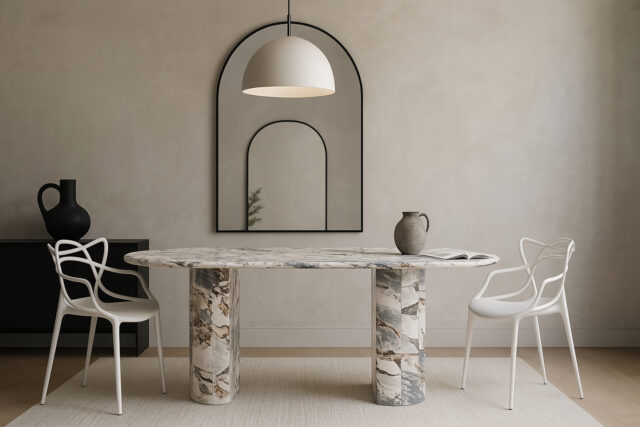 非公開: The Enzoエンゾ ダイニングテーブル、モデーラート マーブル、98インチ ¥1,344,149 エンゾ ダイニングテーブル、モデーラート マーブル、98インチ エンゾ ダイニングテーブル、シルバー トラバーチン、98インチ