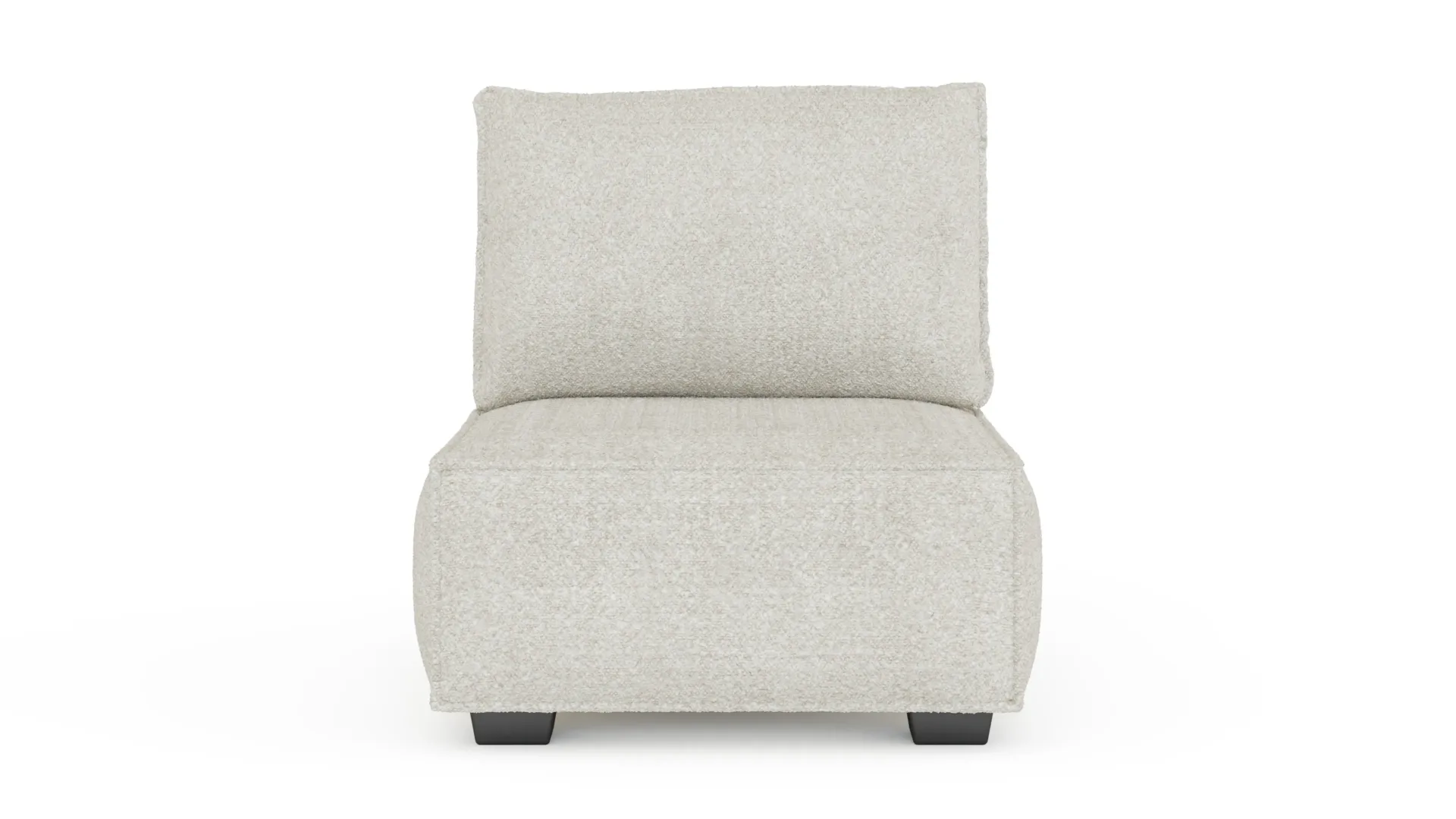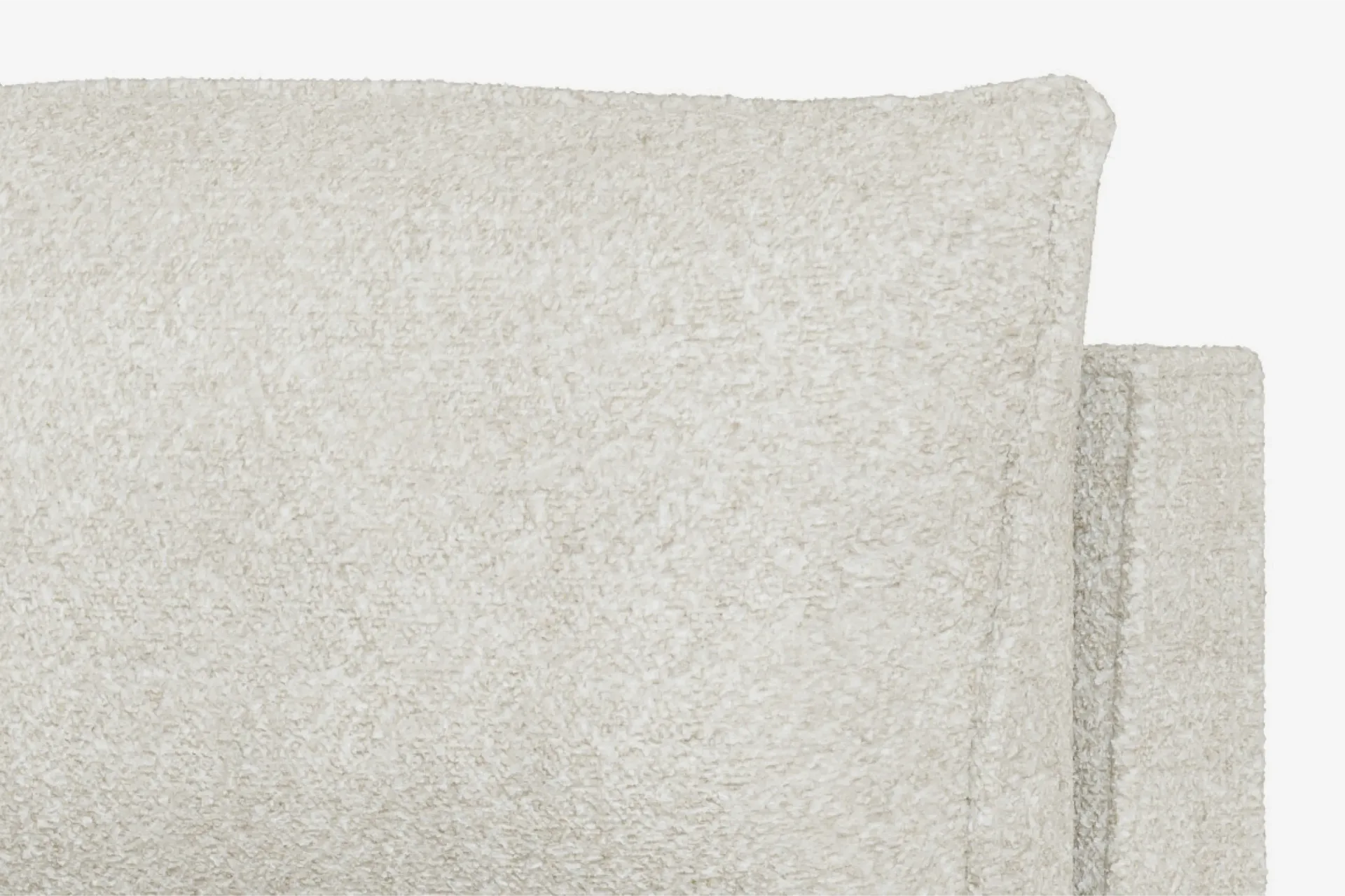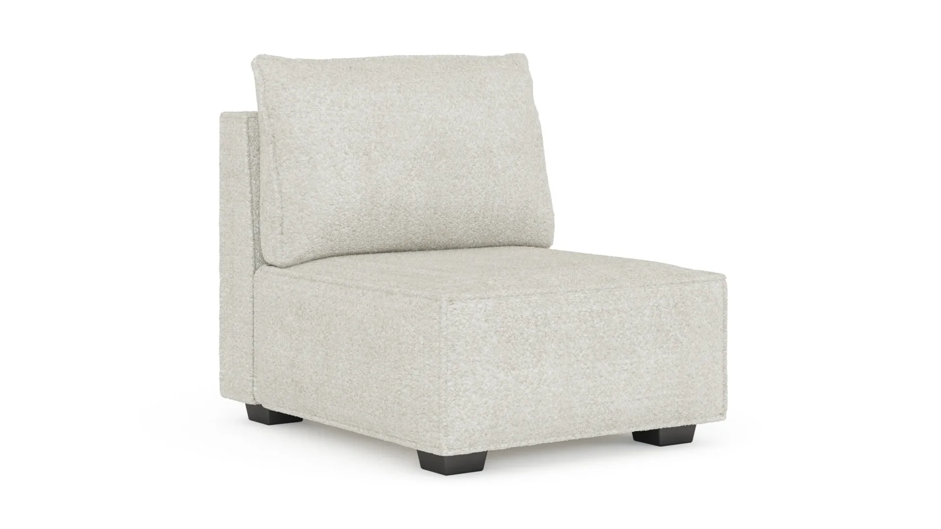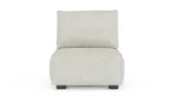 ホワイト・ブークレで仕上げたエレイン・アームレスモジュールは、シンプルで洗練されたデザインで、快適性も兼ね備えています。環境に配慮した素材を使用し、長くお部屋を飾るエレガンスを提供します。