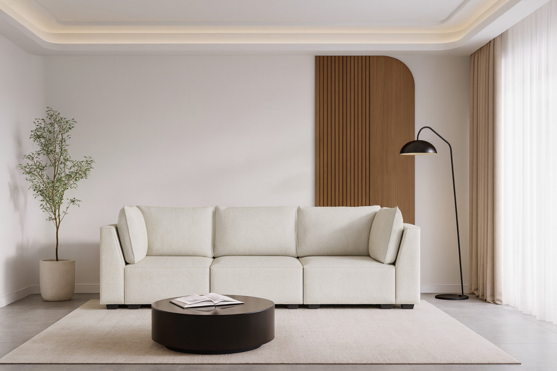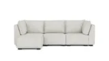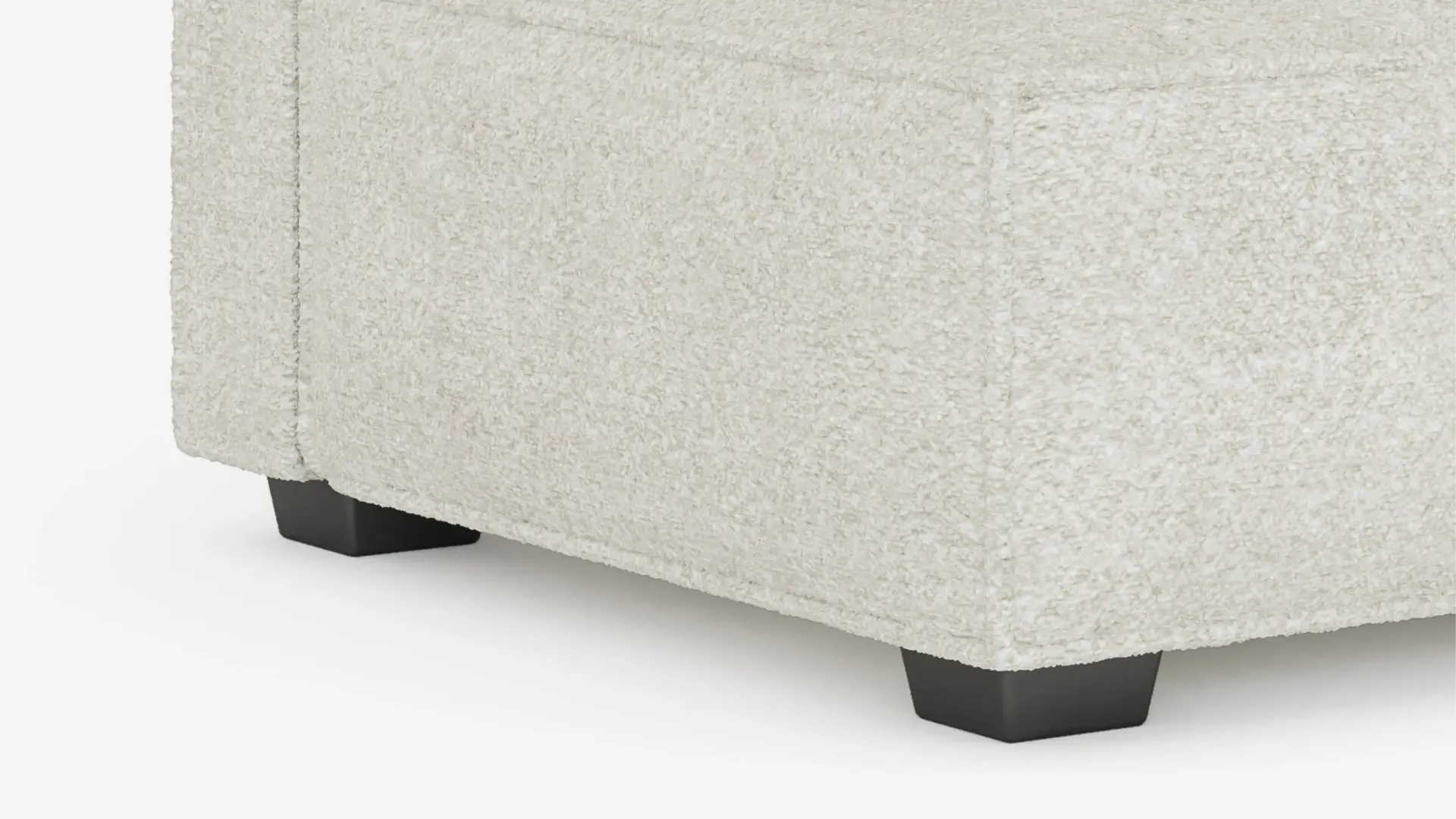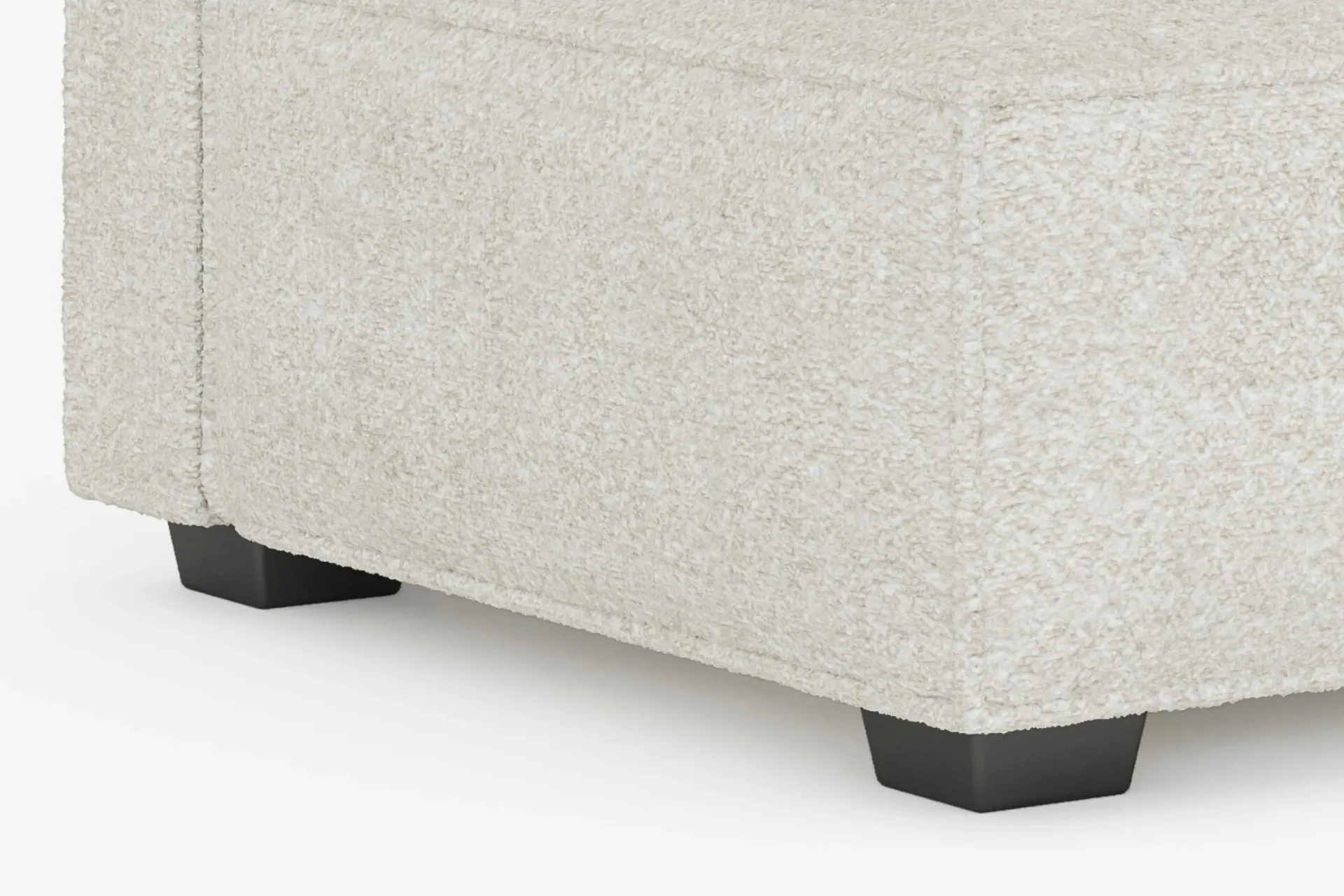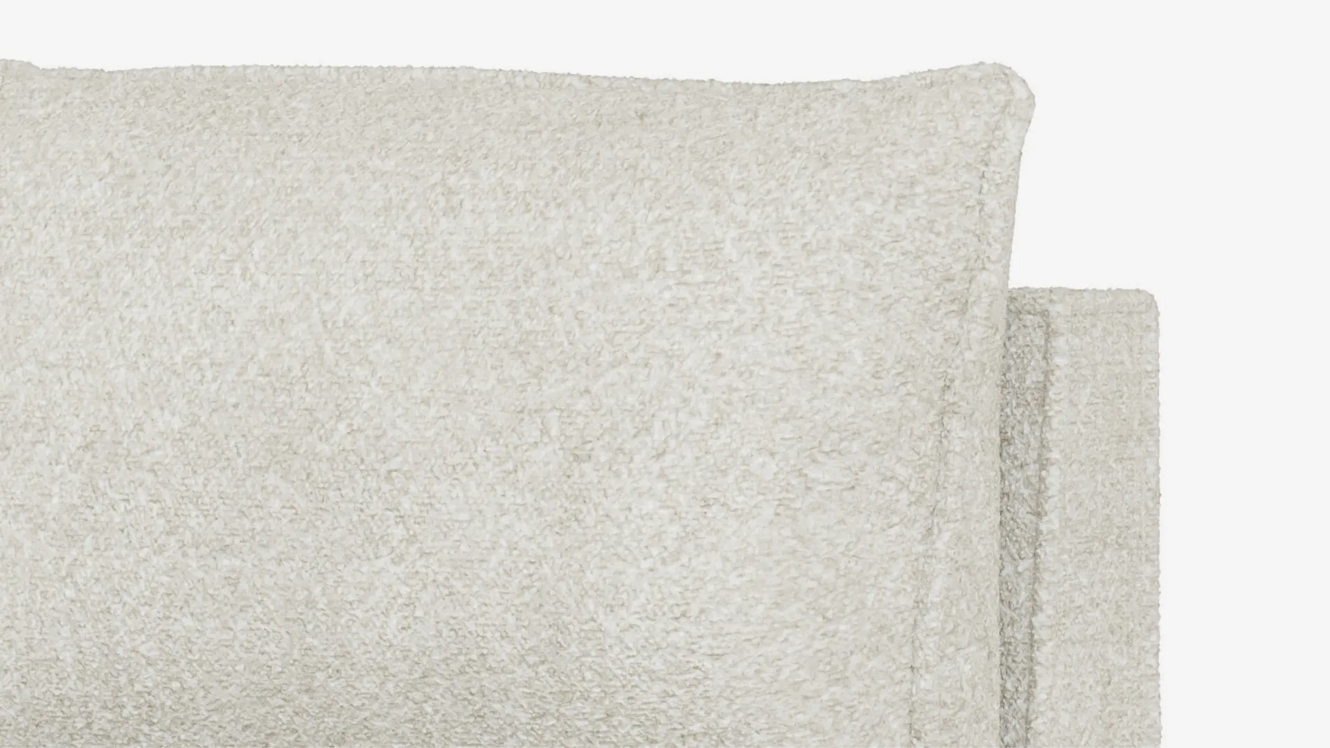 ホワイト・ブークレで仕上げたエレイン・アームレスモジュールは、シンプルで洗練されたデザインで、快適性も兼ね備えています。環境に配慮した素材を使用し、長くお部屋を飾るエレガンスを提供します。