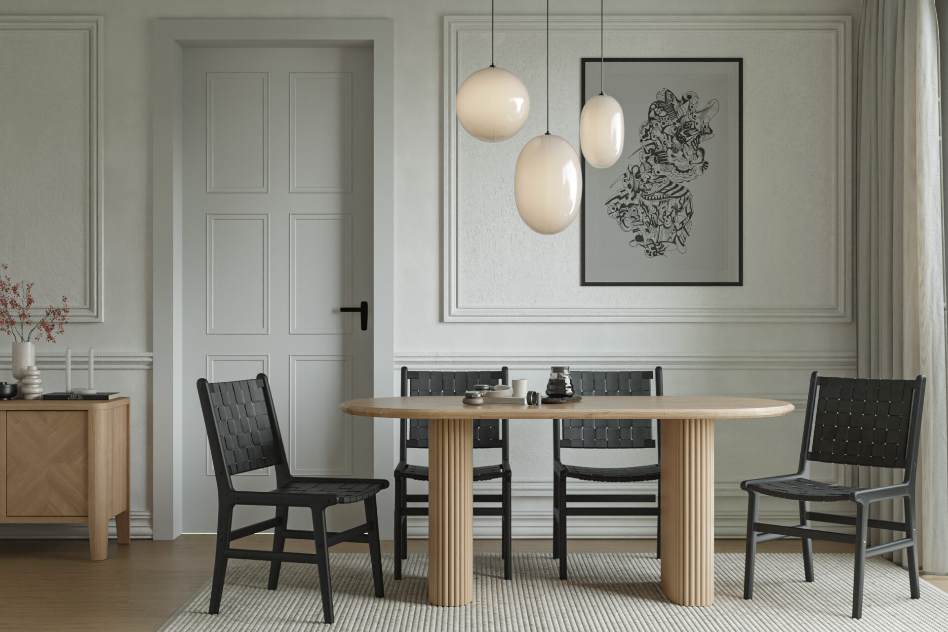 天然木とヴィーガンレザーで作られたEyva Dining Chairは、持続可能性と洗練されたデザインを組み合わせています。長持ちし快適さを重視した作りで、エコ志向の座席でありながら、どんなダイニングスペースにもシームレスに調和します。控えめなエレガンスと深い思いやりを兼ね備えています。