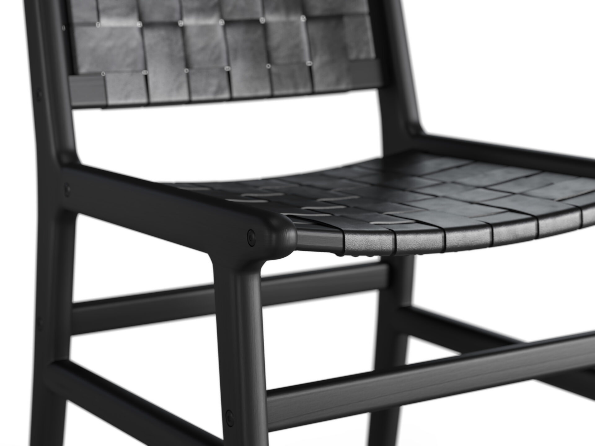 モダンで永遠の、黒い木材とヴィーガンレザー製のEyvaダイニングチェアは、どんな食事にも地に足のついたエレガンスをもたらします。そのすらりとしたラインと音調のコントラストが大胆かつバランスの取れた存在感を生み出し、現代のインテリアに調和します。しなやかなヴィーガンレザーシートは、長時間の会話を通じて快適さを提供し、頑丈な木製フレームは持続的な安定性を保証します。洗練と使いやすさを兼ね備えたこのピースは、日常の食事をより意味のあるものに変えます—デザインと親密さが交わる場所であり、すべての集まりが洗練された、静かな自信の表れとなります。