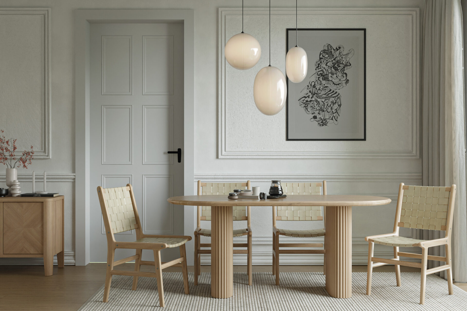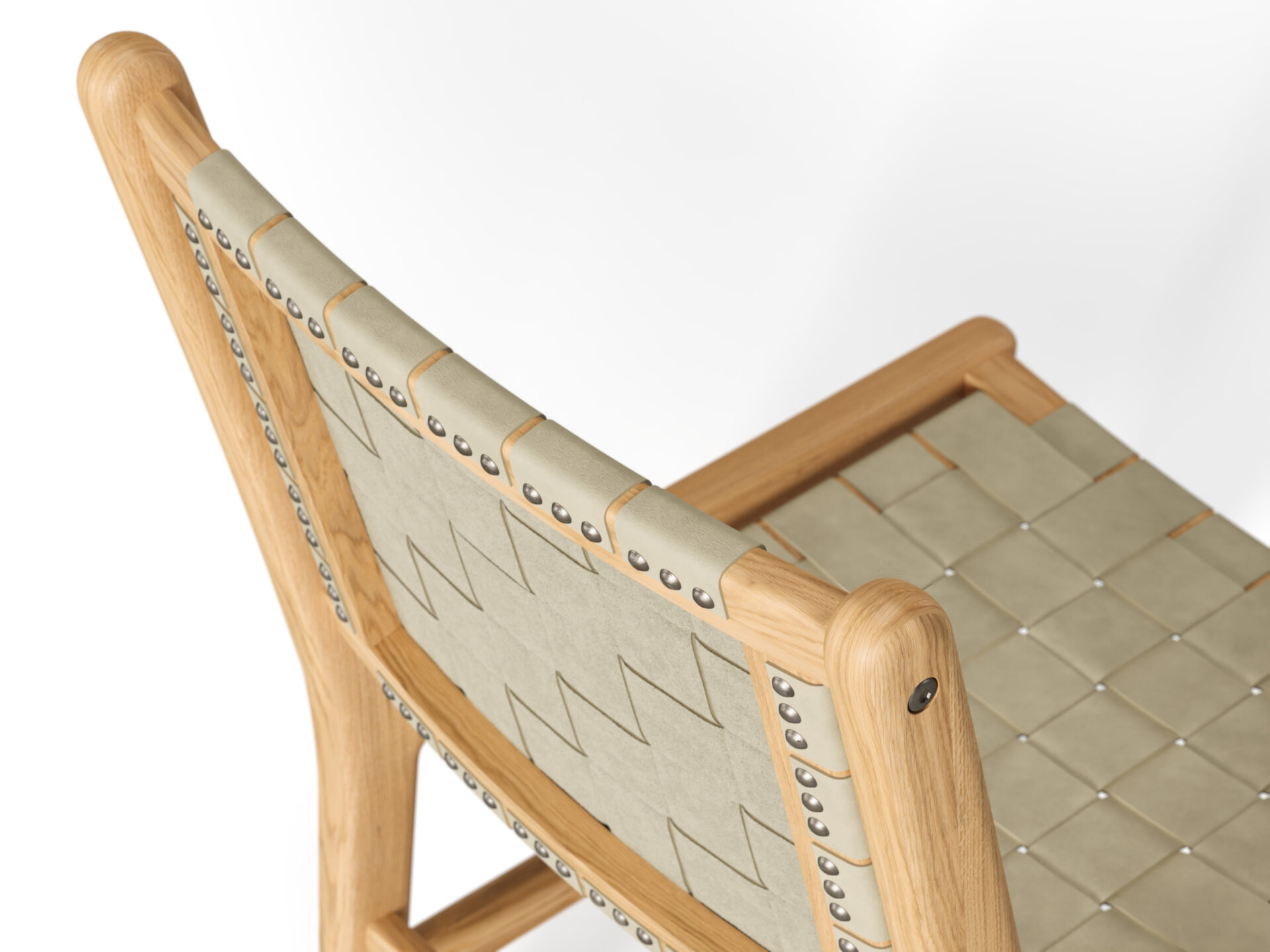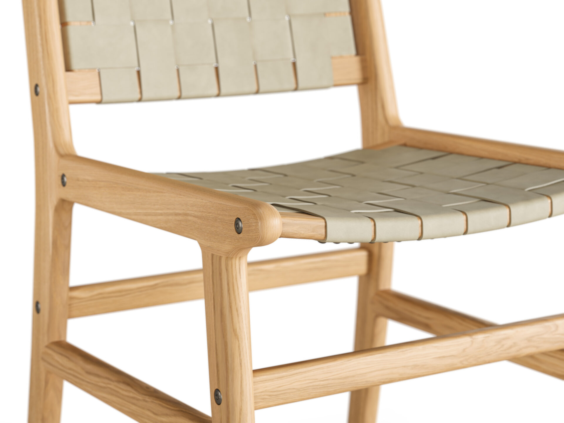 オーク材とベージュのビーガンレザーを使用したEyva Dining Chairは、自然な静けさを体現しています。やさしいトーンと柔らかい質感が落ち着いた、魅力的な雰囲気を作り出し、精巧に作られたフレームが耐久性を保証します。使いやすさを考慮して設計され、日々の集いに暖かさ、バランス、そして美しさを自然に添えます。