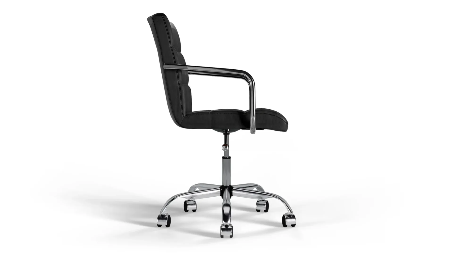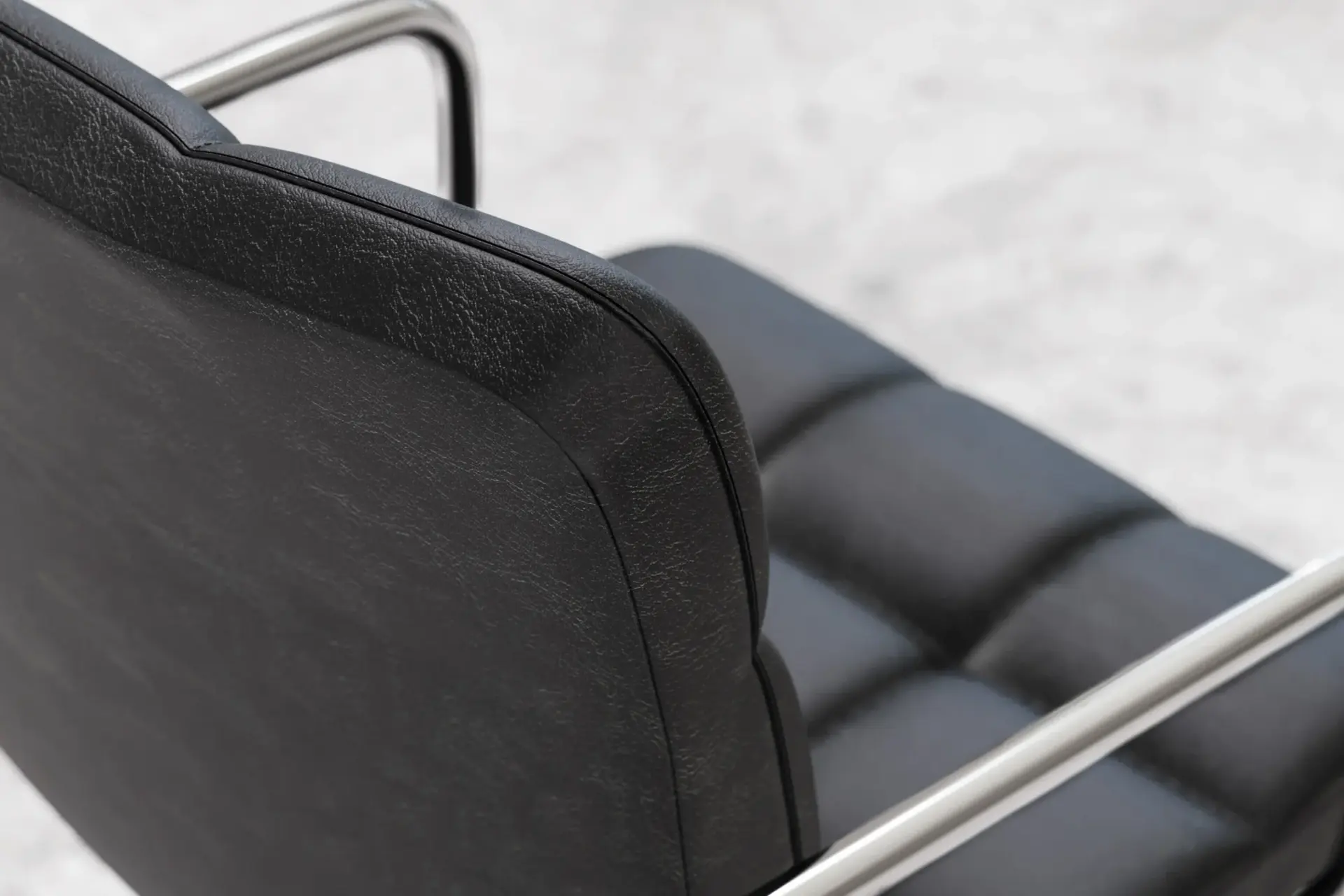 黒いベガンレザーとクロムベース、車輪付きの「フューチュラ ミディアム バック チェア」は、ミッドセンチュリーデザインとモダンな快適さが融合した逸品です。通気性に優れたベガンレザーで張られ、長くご使用いただける品質と快適なエルゴノミクスサポートを提供します。スムーズな車輪と磨かれたクロムベースで、暮らしやすい家庭用やオフィスライフにシームレスに適応します。