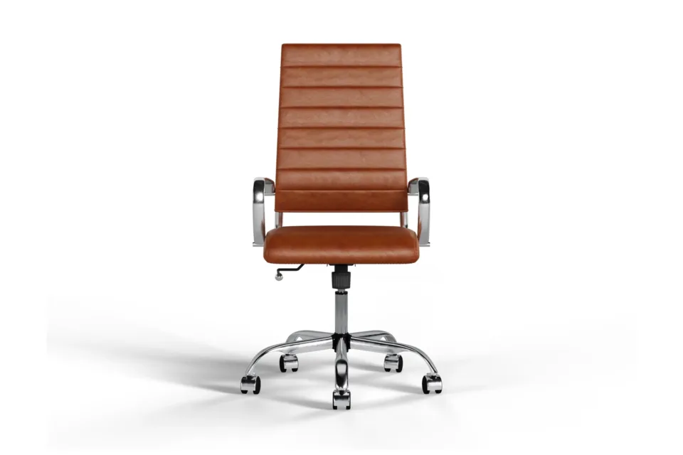 ラグーナ ハイバックチェア(ブラウン・ヴィーガンレザー・クロームベース仕様)は、時代を超えた洗練と確かな強さをもたらします。通気性のあるヴィーガンレザーでアップホルスタリングされ、疲れ知らずの快適さを提供します。頑丈なクロームベースは最大150 kgまでサポートし、スムーズなホイールで移動性を実現します。プロフェッショナルや家庭のオフィスに最適です。