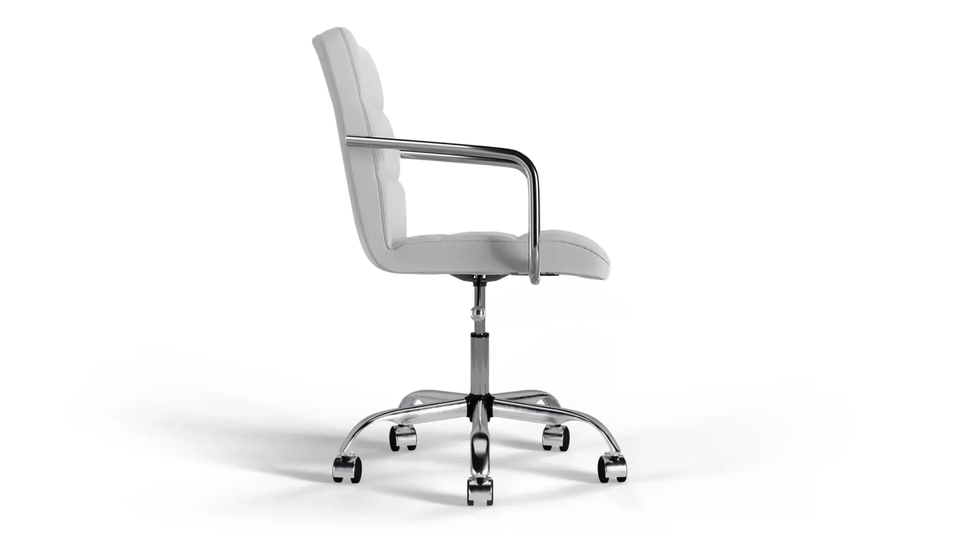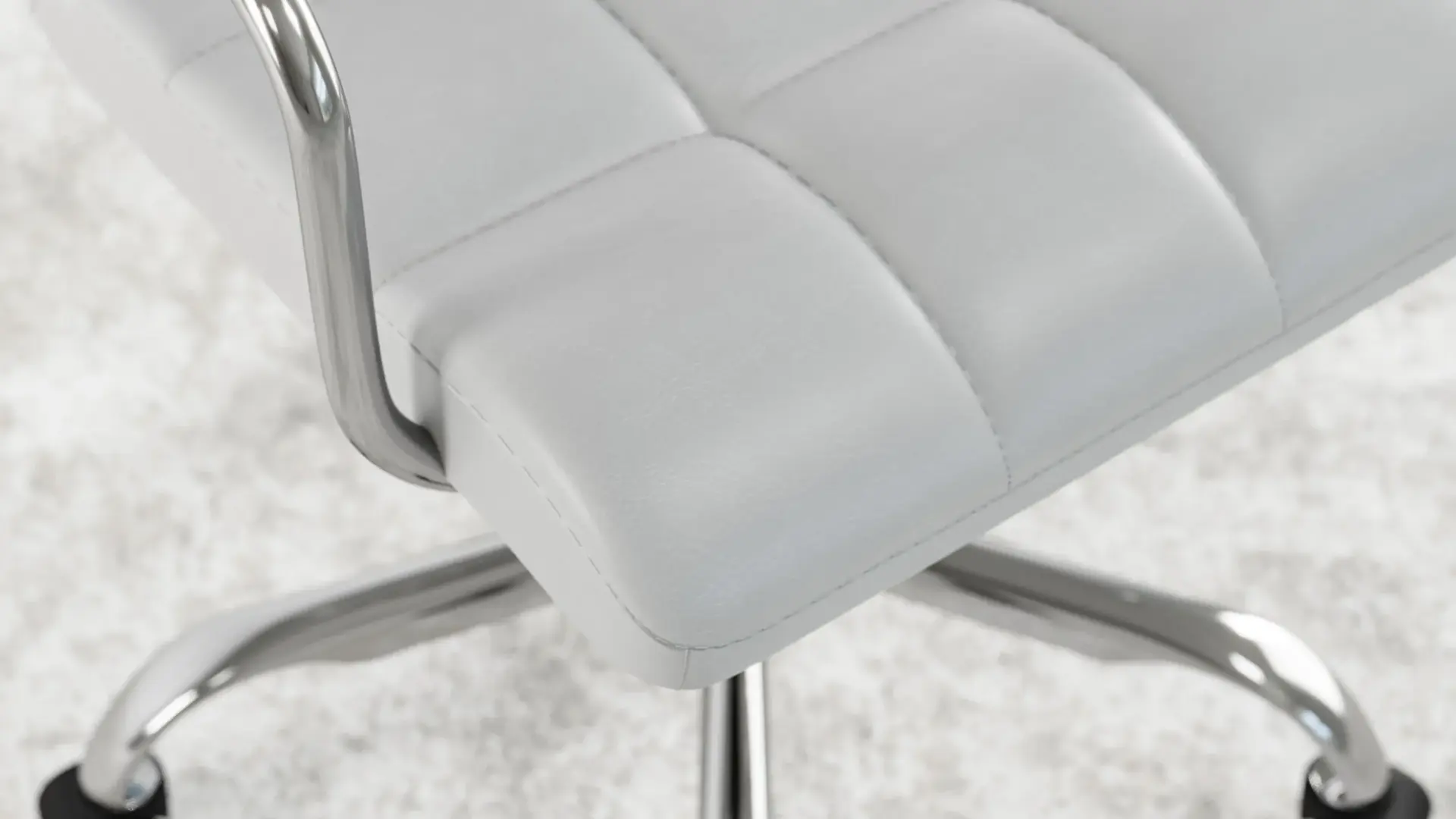 白いヴィーガンレザーとクロム製ベース、車輪付きのフューチュラミディアムバックチェアは、スリムなミニマリズム、通気性のあるヴィーガンレザー、そしてエルゴノミックな快適さを兼ね備えています。滑らかな移動のできる車輪と光沢のあるクロム製ベースで、モビリティとスタイルを提供し、プロフェッショナルな環境や家庭用環境に適した多目的チェアを生み出します。