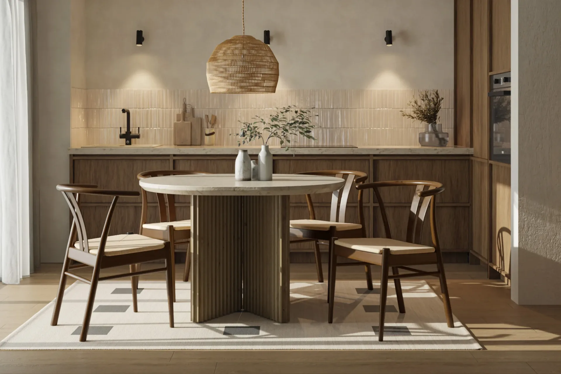 ウォールナット製のスウェーデンダイニングチェアは、豊かな暖かさと永遠の洗練を放っています。1949年にハンス・ウェグナーの有名なWishboneデザインにインスパイアされ、天然素材と優雅なフォルムを通じて中世のエレガンスを具現化しています。職人によって手作りされた各椅子は、ウォールナット材の美しさを映し出しており、深く滑らかで魅力的です。彫刻的なフレームと編み込まれた座面は、バランス、快適さ、そして穏やかな洗練を提供します。耐久性を備えたこの椅子は、現代的であると同時に伝統的な空間にも個性をもたらし、職人技と永続的なデザインの中心的存在となっています。
