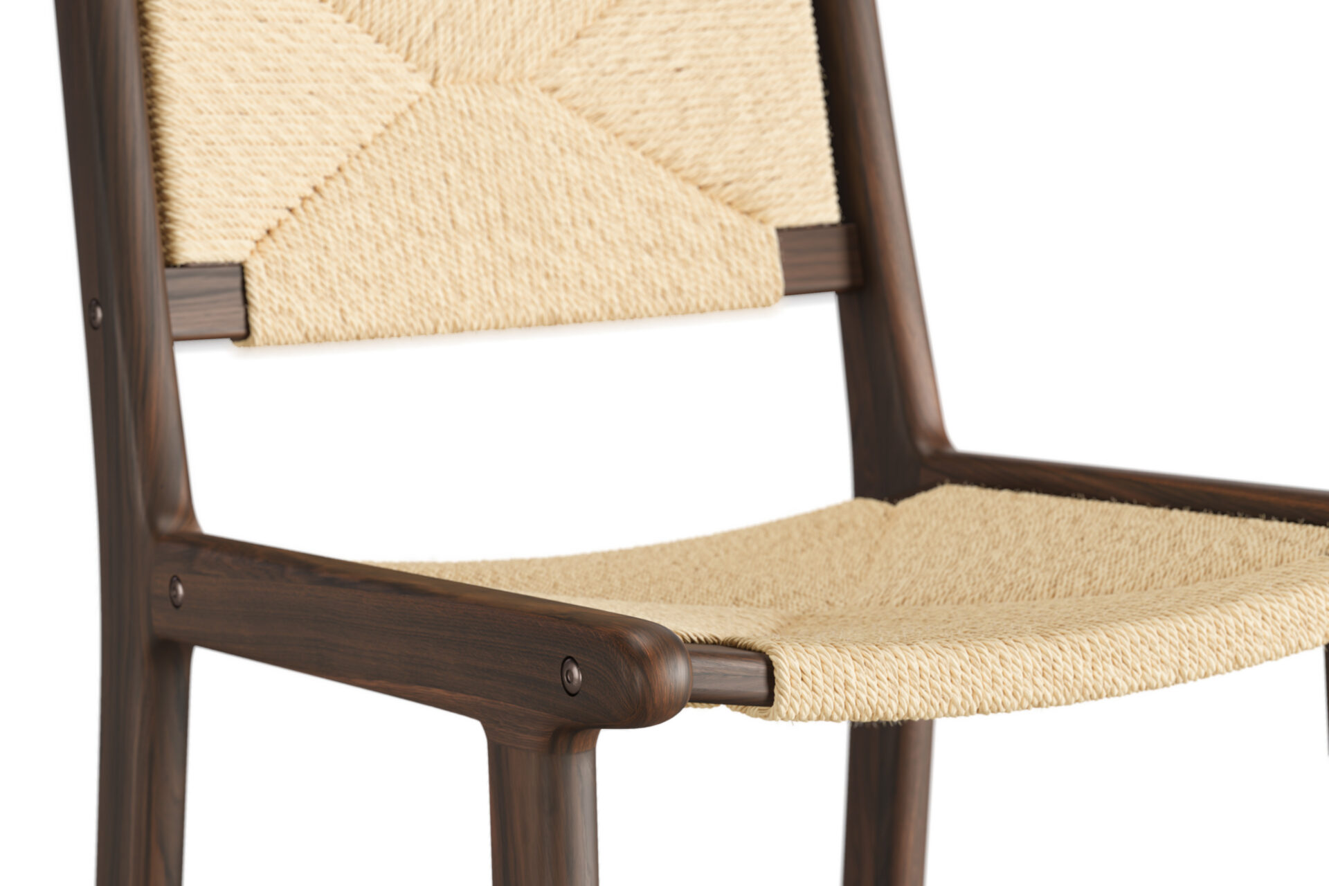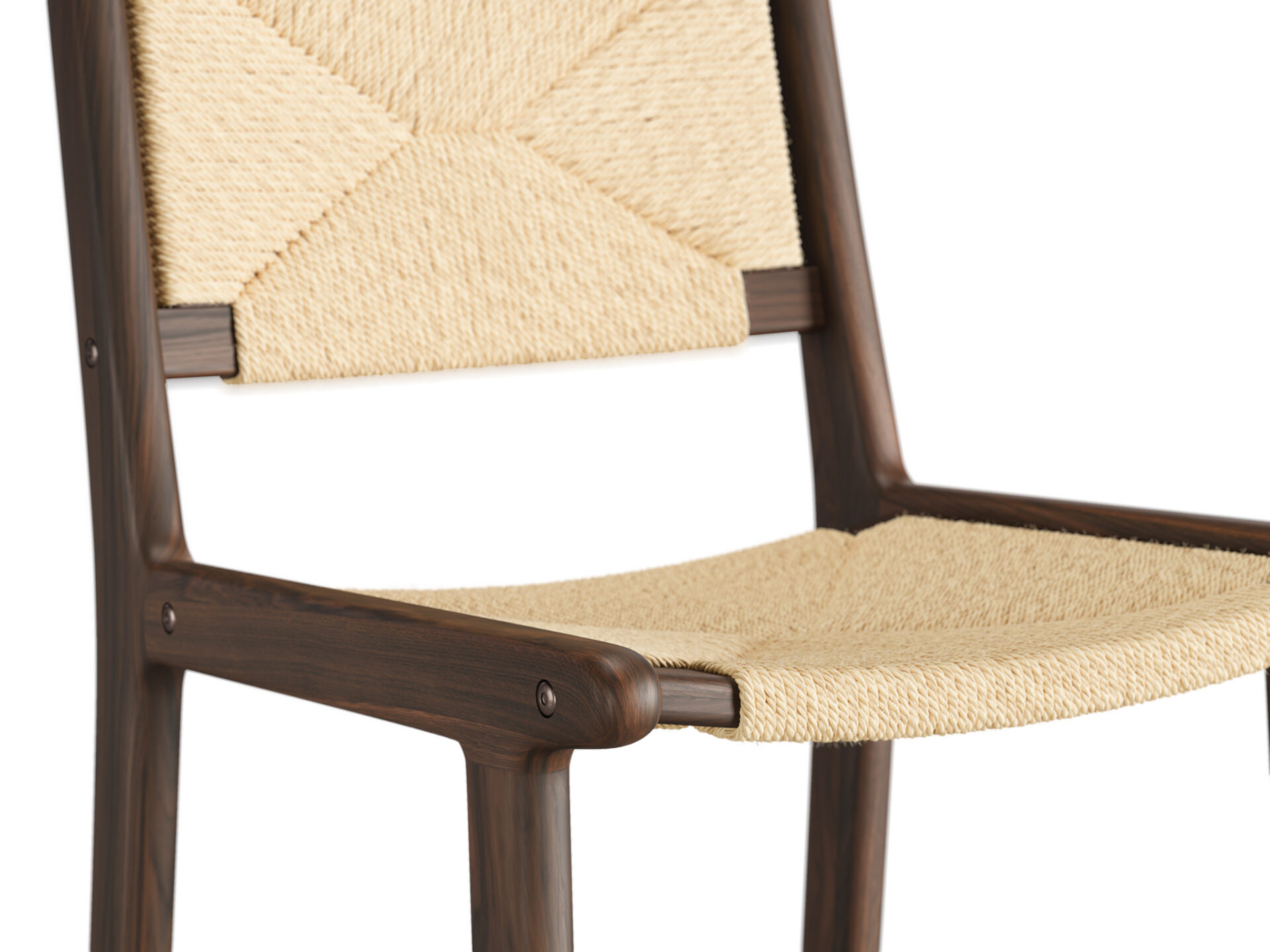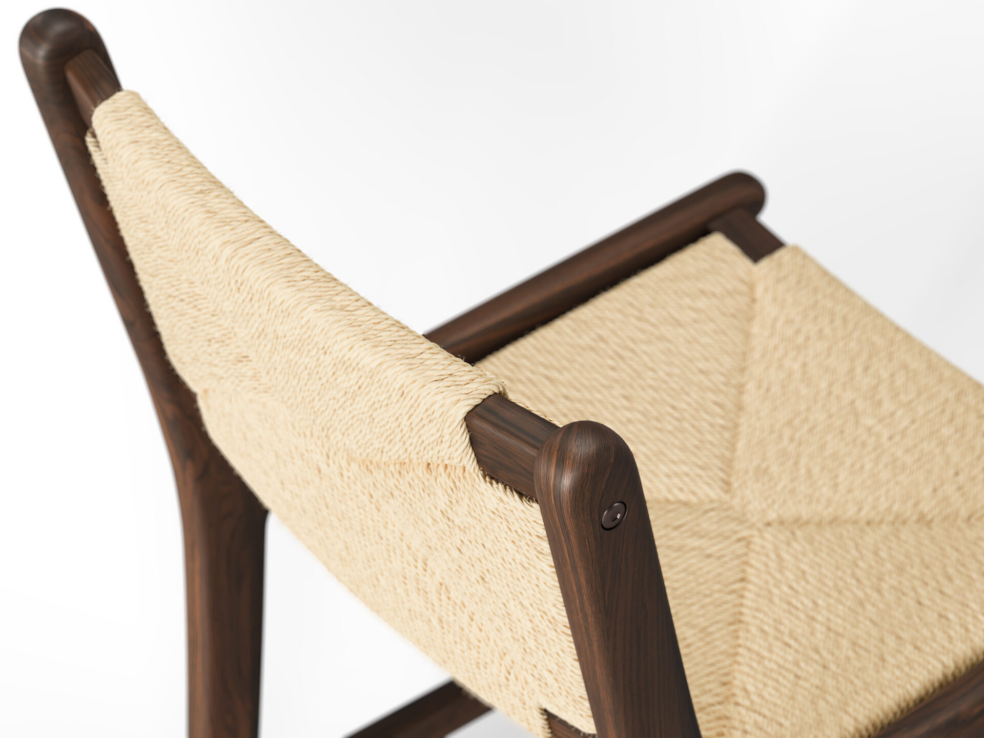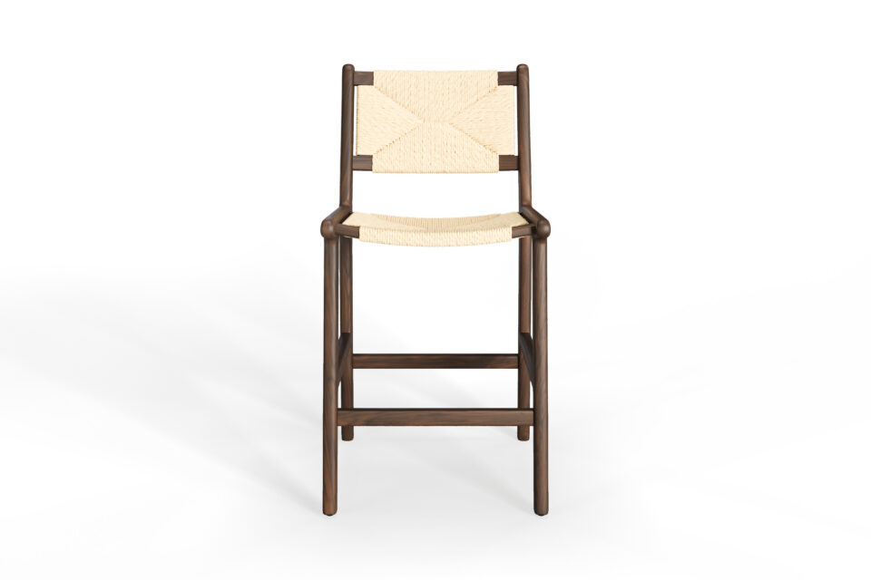 ウォルナ バーチェアはクルミ材とナチュラルなペーパーコードを組み合わせ、ミッドセンチュリーの洗練さと時代を超越した快適さを兼ね備えています。その豊かで土の香りをもつトーンと美しく手織りされたシートは、どんな環境にも深みと質感をもたらし、地に足の着いたエレガンスを提供します。形と感情をバランスよくつくられたこの椅子は、日常のひとときを静かな安らぎの儀式に変えます。キッチンアイランドやホームバーでスタイリングされたとしても、ウィノナの造形的な温かさと職人技のディテールは、何年も大切に思いを馳せる一品となります。