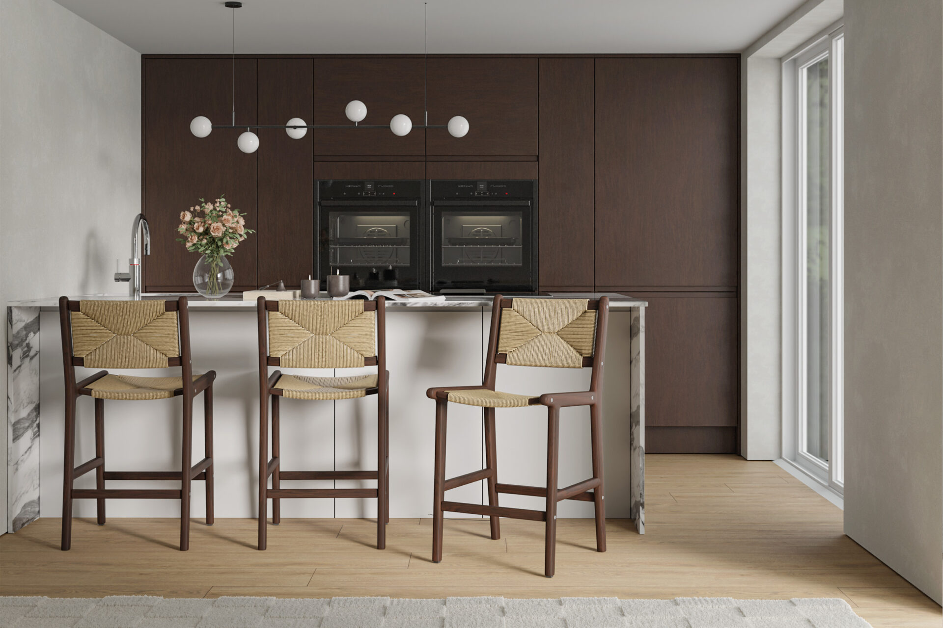 ウォールナット材で仕上げたリッチで洗練されたウィノナ バーチェアは、より深く、居心地の良い空間を提供します。滑らかな曲線とオーガニック素材は、自然な快適さを提供し、キッチンやバーに控えめなエレガンスを添え、すべての瞬間を温かく、楽に保ちます。