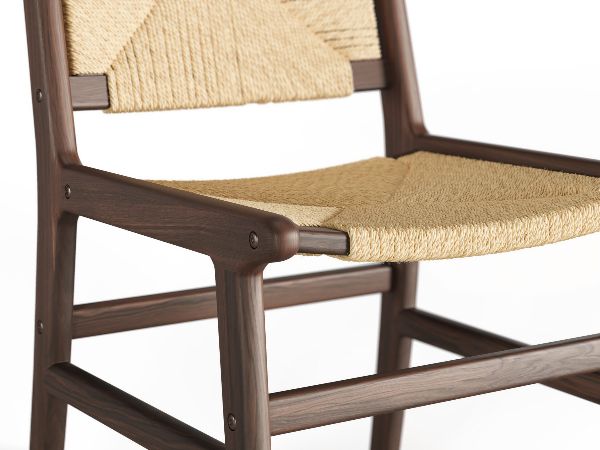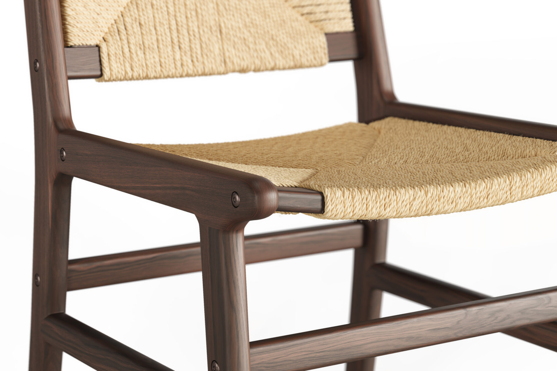 深いウォルナットのフレームと手編みのペーパーコードの座面を持つWinonaダイニングチェアは、自然な洗練と持続する快適さを融合しています。 優美なフォルムと触感のあるテクスチャーが、招待する雰囲気を作り出します。 静かな美しさと持続可能な職人技を重視するモダンな家に最適です。