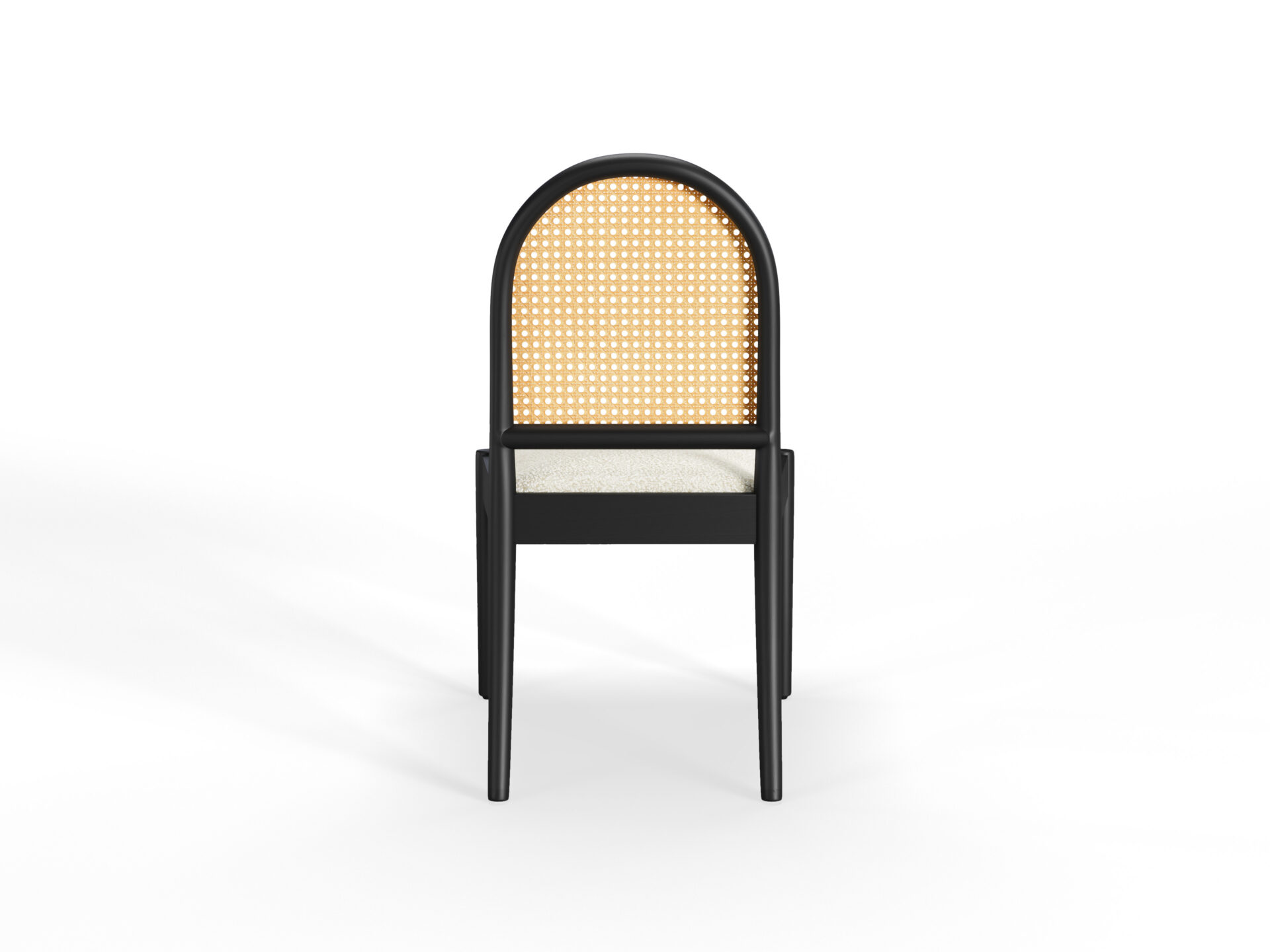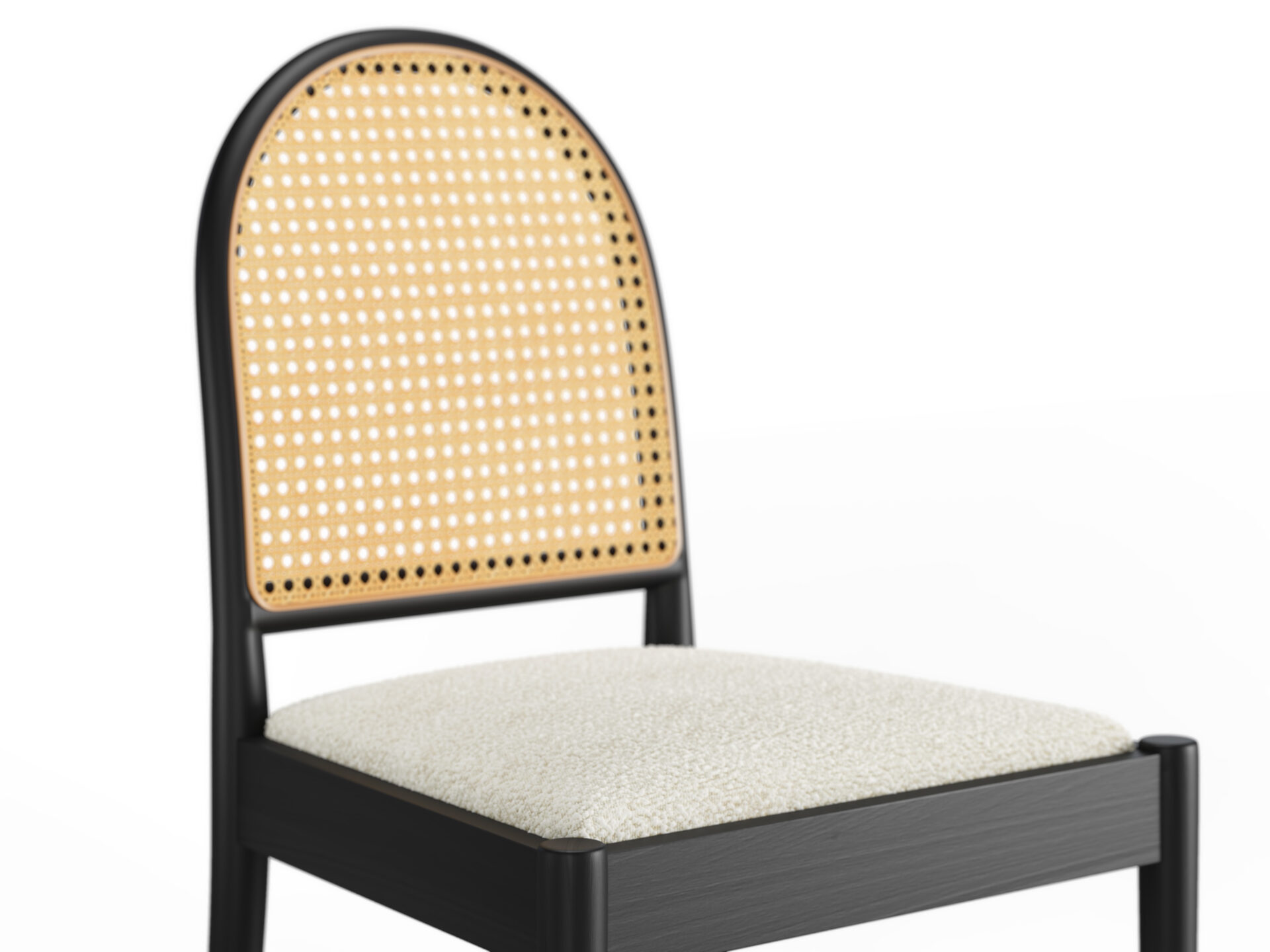 スリークでスタイリッシュなYunaダイニングチェアは、ブラックとホワイトの色合いで洗練されたモダンデザインを体現しています。大胆なフレームはふんわりとしたブークレの座面と美しい対比をなしており、編みこまれたラタン製の背もたれは温かみと個性を添えています。現代的またはエキゾチックなインテリアに最適で、すべての食事を洗練された快適な体験に変えてくれます。