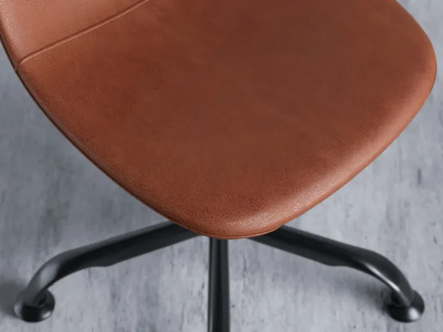 エブダーノ オフィスチェア - ブラウン ヴィーガンレザーとブラックベース - ホイールなし