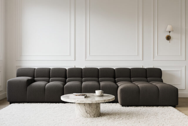 Elaineエレイン、ホワイト(ブークレ)、4人掛けセクショナル ¥659,749 イレイン、ライトグレー(リネン)、4人掛けセクショナル イレイン、ダークグレー(リネン)、4人掛けのセクショナル エレイン、ブラウン(ヴィーガンレザー)、4人掛けセクショナル