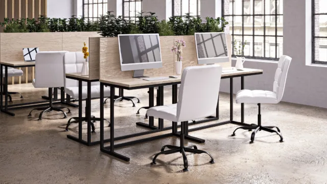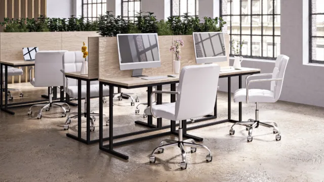 Modern Office Chairsウェイナー オフィスチェア - 白いヴィーガンレザーとクロームベース、ホイールなし ¥42,569 ウェイナーオフィスチェア - グレーのベーガンレザーとクロムベース、ホイールなし +69