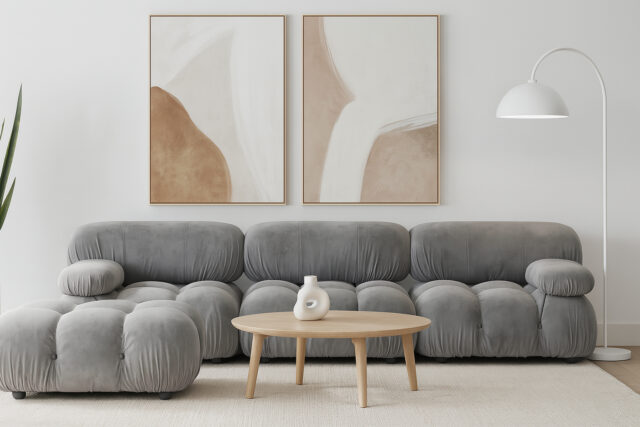 Mario Bellini Large Sectional, Right Corner, Beige Gray Chenille